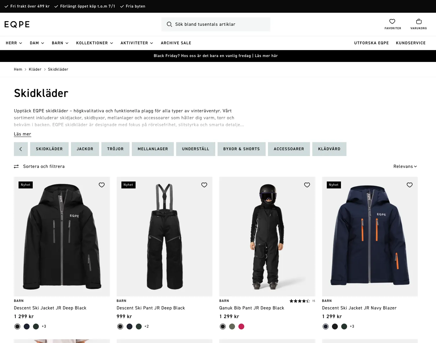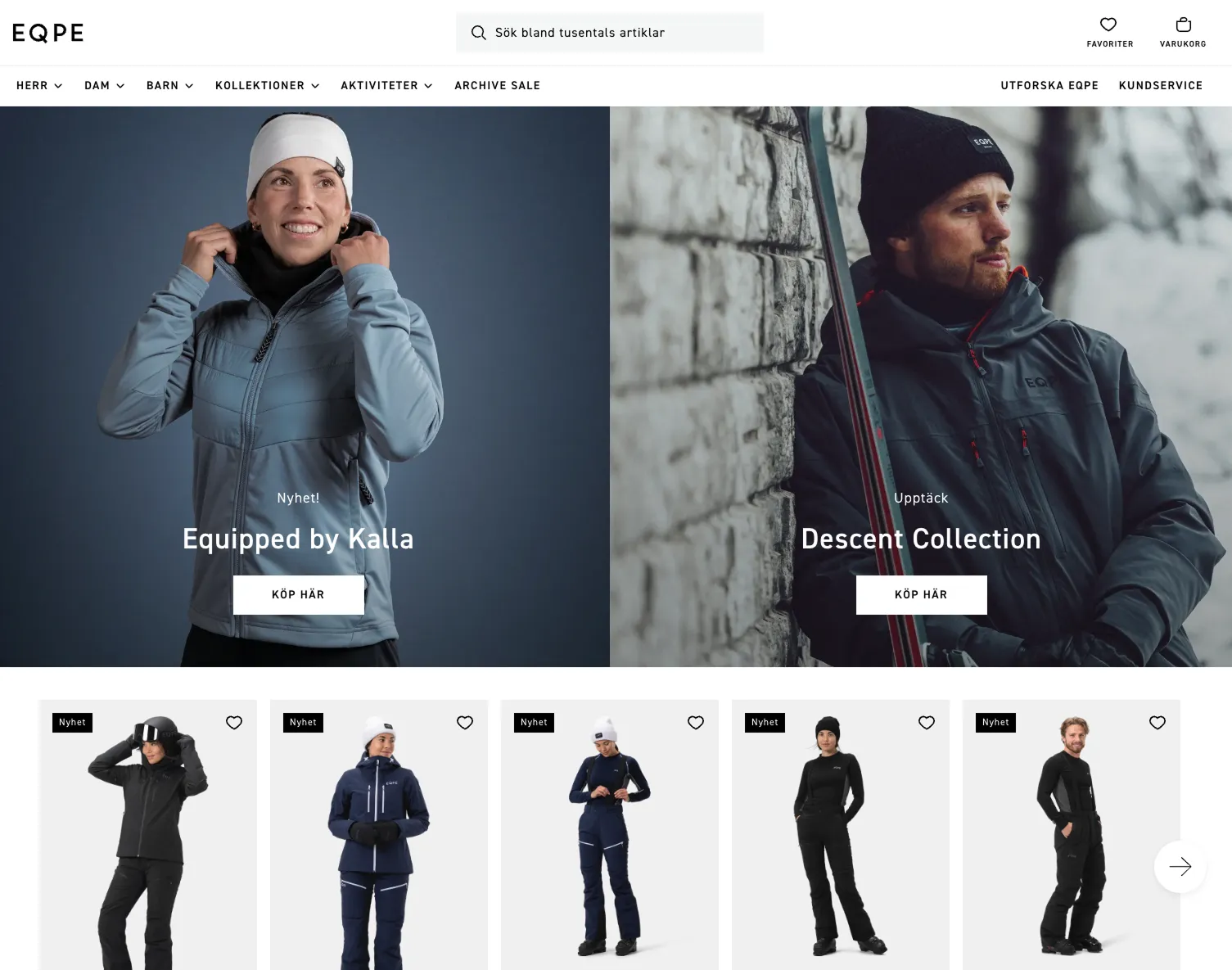 EQPE is a brand dedicated to providing high-quality outdoor apparel and accessories designed for year-round activities, including skiing, hiking, mountain biking, and running. The website features a variety of collections, showcasing items like jackets, tights, beanies, and more, catering to both adults and children.