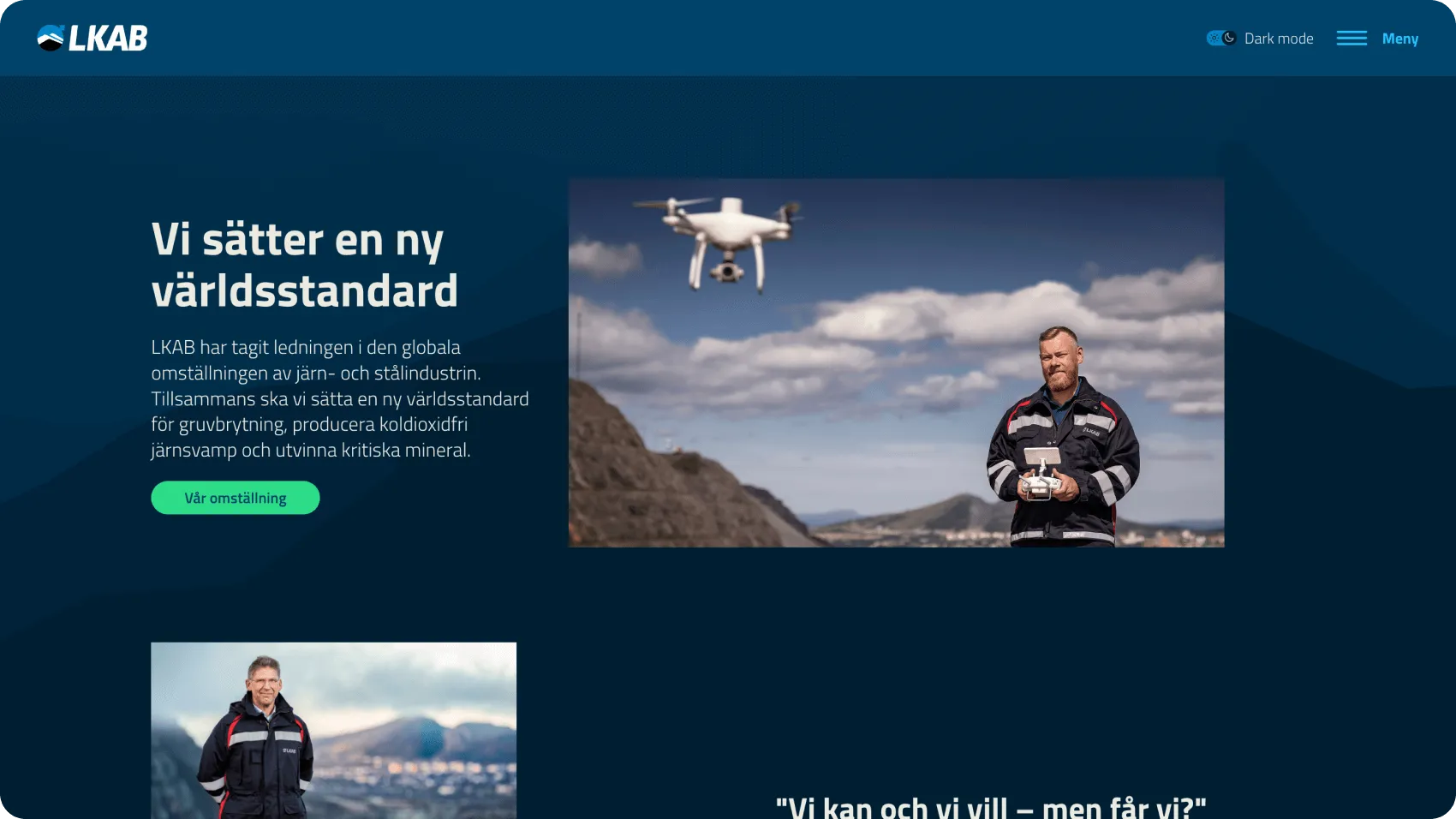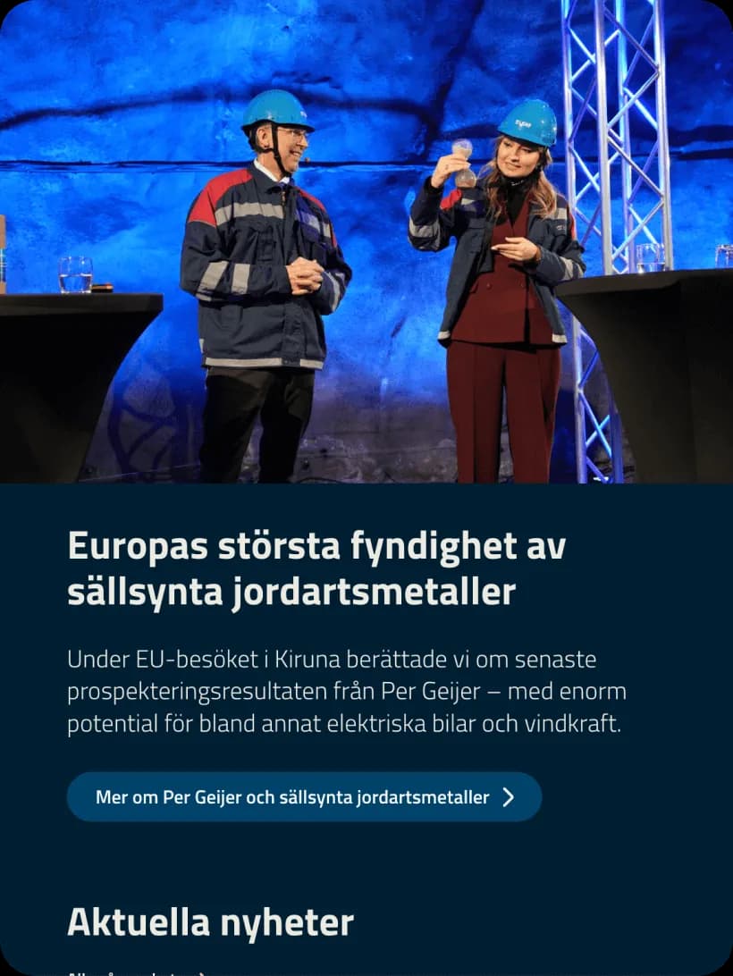 Bazooka's role extended beyond technical development to include digital strategy, UX and UI design, motion design, visual identity, and SEO optimization. The partnership with LKAB was characterized by a collaborative approach, with Bazooka acting as both a strategic and operational partner. This close collaboration ensured effective project management and alignment with LKAB's long-term goals and vision.