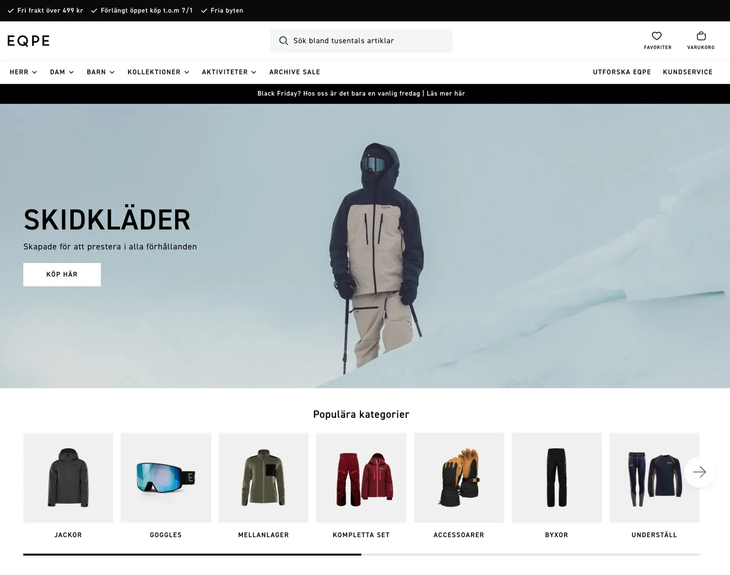 EQPE is a brand dedicated to providing high-quality outdoor apparel and accessories designed for year-round activities, including skiing, hiking, mountain biking, and running. The website features a variety of collections, showcasing items like jackets, tights, beanies, and more, catering to both adults and children.
